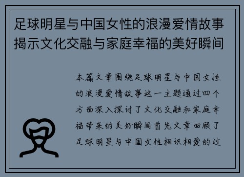 在新年到来之际,全球各地的足球明星们欢聚一堂,共同庆祝这个充满希望和喜悦的节日。本文将从四个方面对这些足球明星的精彩瞬间进行回顾与祝福分享:首先是他们在庆祝活动中的热情互动,其次是他们分享的新年愿望,再者是各自的生活点滴,最后探讨他们如何通过公益活动传递温暖。通过这些方面,我们不仅能够感受到足球明星们光鲜亮丽的一面,也能窥见他们真实而温暖的一面。在这篇文章中,将为读者呈现一个多维度的足球界新年盛宴...