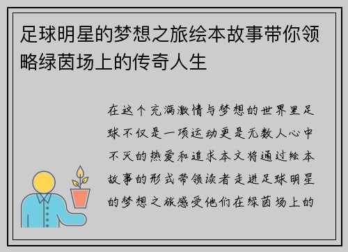 杰登艾维,这位年轻的篮球新星,以其出色的表现和无与伦比的潜力,迅速在NBA赛场上崭露头角。本文将从多个方面详细阐述他的成长故事,包括他的早期经历、职业生涯起步、在联盟中的进步以及未来的发展前景。通过对这些方面的分析,我们将全面了解杰登艾维如何从一名新秀逐渐成长为篮球界的一颗明星,以及他在未来可能达到的新高度。这不仅是一个关于个人奋斗和成就的故事,更是对梦想与努力相结合的真实写照。 1、早期经历与...